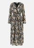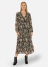This wrap dress is perfect for the changing seasons - Super versatile for work or weekend in a midi length and wrap shape that flatters. The swirling animal pattern looks great, style with ankle boots and tights. With long sleeves, tie belt at the waist.