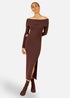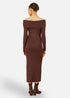 Yumi Brown Bardot Knitted Fitted Midi Dress