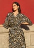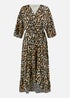 Yumi Brown Leopard Midi Wrap Dress With Kimono Sleeves