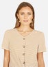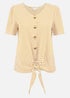 Learn moreAdd a classic look to your wardrobe with this Brown striped jersey top from Yumi. Cut from super soft cotton, with a button front, it's styled with a tie on the hemline for a sweet finish.