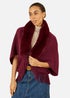 Yumi Burgundy Fur Collar Shrug With Tassel Hem