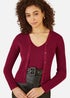 Yumi Burgundy Metallic Rib Knitted Cardigan