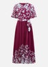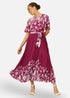 Yumi Burgundy Mirror Floral Design Pleated Midi Dress