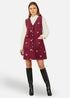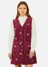 Yumi Burgundy Squirrel Embroidered Button Up Pinafore Dress