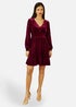 Yumi Burgundy Velvet Long Sleeve Skater Dress