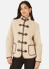 • Yumi Cream Borg Jacket With Faux Leather Button Details