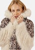 Yumi Cream Fur Biker Jacket With Leopard Print