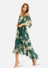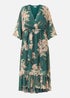 Yumi Floral Print Green Kimono Midi Wrap Dress