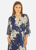 Yumi Floral Print Navy Kimono Midi Wrap Dress