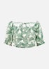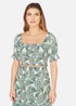 Yumi Green Cotton Voile Palm Leaf Ruched Crop Top