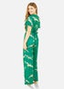 Yumi Green Crane Print Angel Sleeve Jumpsuit