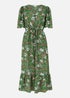 Learn morePerfect matched with leather and paired with ankle boots, this stunning floral midi dress by Yumi features material covered button through fastenings, a waist accentuating string tie belt, relaxed short sleeves and frilled hem detailing.