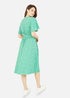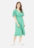 Learn moreWith a curve accentuating wrap around fit, waist cinching thick tie belt and all-over daisy print, this stunning green midi dress is a gorgeous sunny piece to see you into Spring. Match with a mini-backpack and white trainers or flatforms.