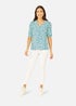 A top for the summertime, with a puffy sleeve and gorgeous Green all over ditsy prints, this is the perfect partner for white jeans. The neckline sits in a V and the hem sits at the hip, with an over all relaxed style fit.