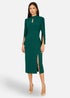 Yumi Green Fitted Midi Dress With Flute Sleeves