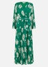 Yumi Green Floral Pleated Midi Wrap Long Sleeve Dress