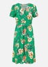 Learn moreThis Yumi dress will make a great addition to your wardrobe this season. The wrap over neckline, short sleeves and ruched waistline create a great shape. The knee length skater style skirt will pair great with sandals or heels for fancier events and the all over green floral print looks fresh and summery.