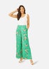 Yumi Green Floral Satin Wide Leg Trousers