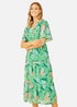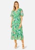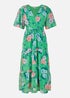 Yumi Green Floral Wrap Midi Dress With Tiered Hem
