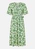 Yumi Green Floral Wrap Midi Dress