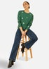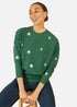 Yumi Green Gold Foil Star Print Relaxed Fit Jumper