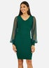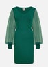 Yumi Green Knitted Body Con Dress With Chiffon Sleeve