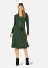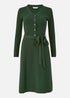Learn morePerfect matched with suede ankle boots, this Green knitted skater dress is a unique and versatile piece. Features a fitted ribbed top with long sleeves and buttons, a waist tie belt and floaty skater skirt.