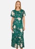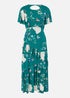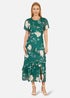 Yumi Green Mesh Bird & Floral Print Midi Dress With Ruffles