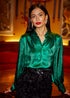 Yumi Green Metallic Relaxed Balloon Sleeve Shirt