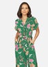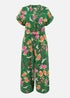 Yumi Green Recycled Crane Print Jumpsuit With Matching Belt