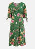 Yumi Green Recycled Crane Print Kimono Midi Dress