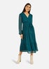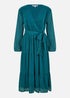 Yumi Green Recycled Dobby Spot Long Sleeve Midi Wrap Dress