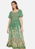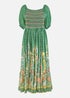 Yumi Green Ruched Leaf Print Maxi Dress With Puff Sleeves