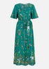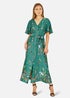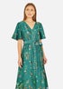 Yumi Green Satin Animal Safari Print Midi Shirt Dress