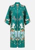 Yumi Green Satin Crane Border Kimono