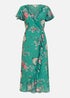 Yumi Green Satin Crane Print Wrap Dress
