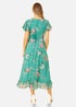 This exquisite satin Crane print wrap dress is enhanced with pretty and delicate flowers. A flattering wrap shape that ties at the waist to enhance your silhouette. The frill detail lends a feminine feel, whilst the asymmetric midi hemline is perfect for all your Spring/Summer occasions.