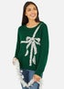 Yumi Green Sequin Bow Knitted Jumper