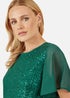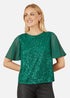 Yumi Green Sequin Top With Sheer Sleeves & Cut Out Back