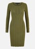 This understated show stopper is perfect for all party season long. In a shimmering fabric, with directional knit that creates an hourglass illusion on the body, you will feel a million dollars in this midi dress. The long sleeves are finished with a button at the cuff.