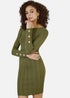 Yumi Green Shimmer Fitted Midi Dress With Button