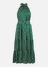 Yumi Green Spot Print Halter Midi Dress With Matching Belt