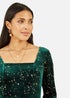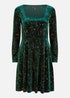 Capture the beauty of the night sky in this Green long sleeve skater dress from Yumi. With a square neckline, fit flare shape and stunning velour fabric that is not only glamorous but super soft too. The all over constellation print is a unique take on sparkles for the festive season and would look great at your Christmas party styles with gold shoes and accessories.