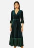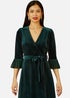 Yumi Green Velvet Wrap Midi Dress With Contrast Hemline