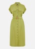 Yumi Green Viscose Linen Look Midi Shirt Dress With Wooden Belt
