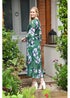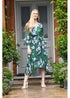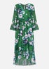 Yumi Green Watercolour Floral Dip Hem Midi Dress