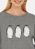 Yumi Grey Christmas Festive Penguin Knitted Jumper