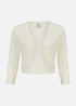 Layer up with this Yumi Ivory Knitted Bolero. Made in a close knit soft feel fabric. This little number is perfect to layer over any dress for those fancy events to keep you looking sophisticated. In a simple edge to edge curve design, this piece will sit at the waist, with a 3/4 sleeve to keep the chill off.