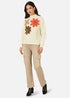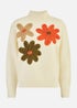 Yumi Ivory Knitted High Neck Jumper With Applique Flowers
