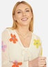 Yumi Ivory Tie Front Cardigan With Flower Design